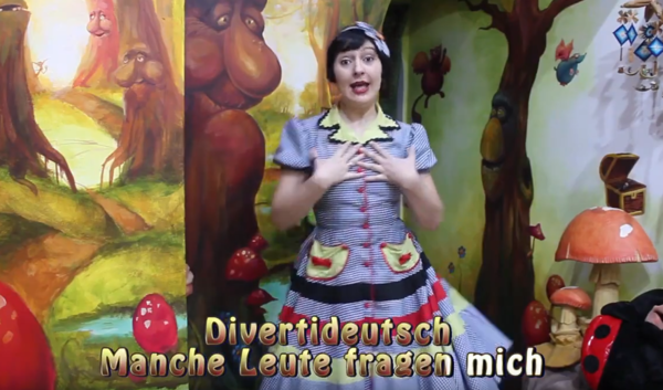 Nuestra colega Berta, profesora de alemán para niños comparte sus recursos multimedia con cante y baile, también con títeres y libros de cuentos con marionetas. Su enfoque es muy artístico, divertido y emocional, dotado de decorado y disfraces muy elaborados, educación en valores e inclusión ( lengua de signos, audios y previsto braille ).